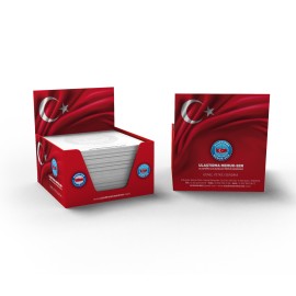 *Kutu İçi Adet 80 *Kutu CMYK Baskılı Selefonlu *İç Kağıt 170 gr 1. Hamur Tek Renk Baskılı *Kutu Ebat: 8,5 x 11,5 x 1,8 cm *İç Kağıt: 8,3 x 11,5 cm *Karton: 350 gr. A. Bristol